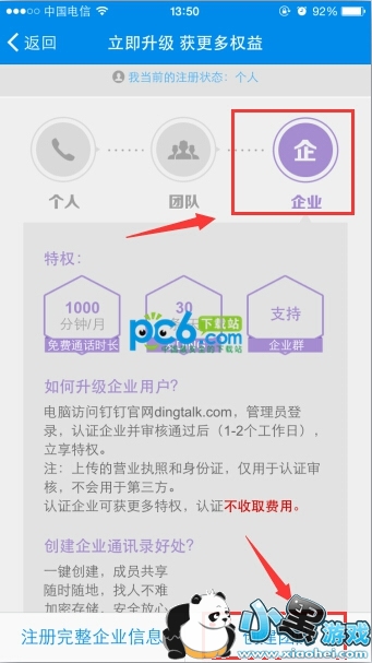 阿里正式推出了全新IM产品“钉钉”每月最多1000分钟的免费电话,前提是需要升级为企业用户,那么钉钉免费电话怎么升级企业用户?下面教大家钉钉升级企业用户获取1000分钟免费通话方法。