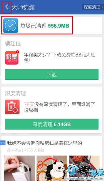 6.清理完毕,点击左上角的【返回】即可