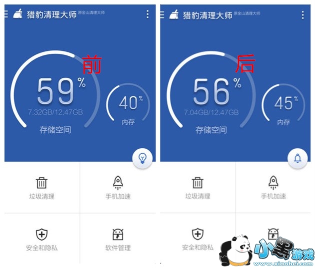 7.清理前后手机内存空间对比