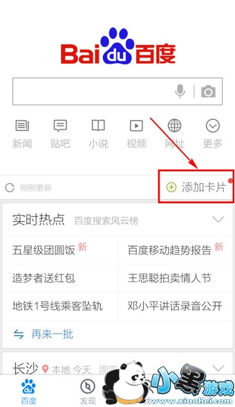 1.进入手机百度,点击【添加卡片】