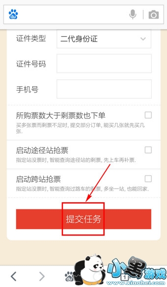 8.填写购票信息,最后点击【提交任务】即可