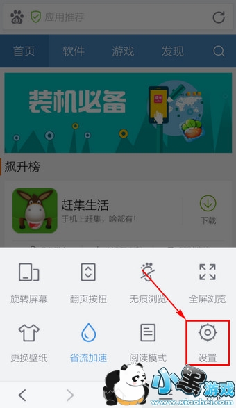 2.向左滑动打开下一页,点击【设置】