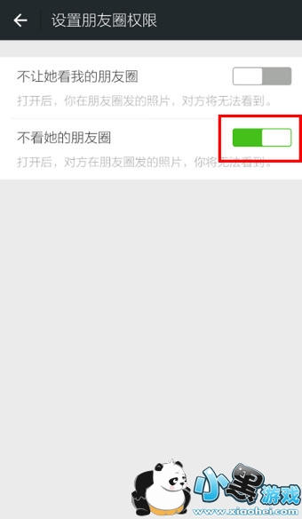 6.按钮变为绿色表示开启,即可屏蔽这个人的朋友圈