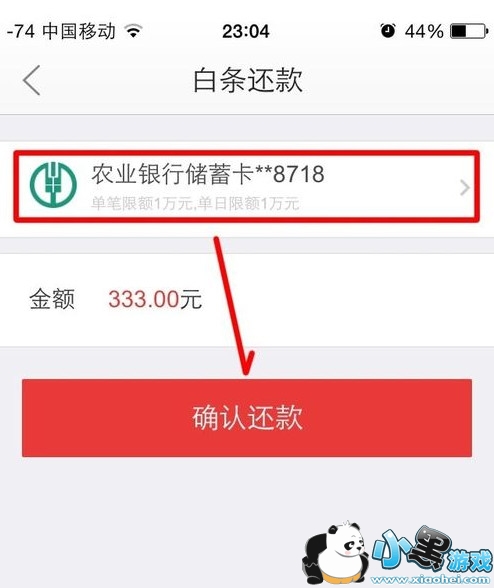 4、选择事先绑定的【银行卡】-【确认还款】。