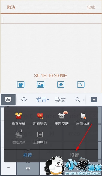 1.点击手机百度输入法左上角【du】