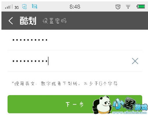 2、然后进行注册,设置好密码,点击下一步