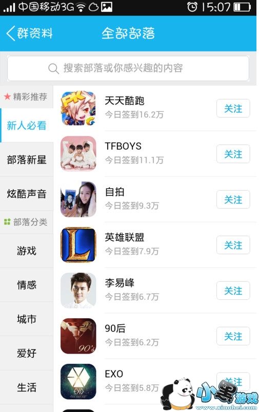 3、点击进入到兴趣部落的页面上,然后根据分类有很多的部落,你选择你喜欢的部落。