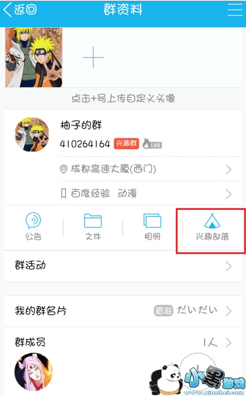 2、打开群后,点击右上角人物图标,查看群资料,然后你可以在群资料的页面上看到【兴趣部落】选项。