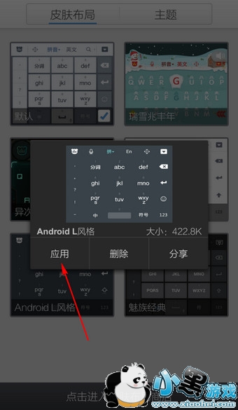 4.下载后点击皮肤,选择【应用】