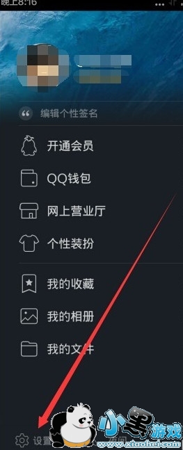 1、打开手机QQ,在主界面右滑呼出菜单选项,在页面最左下角找到“设置”选项