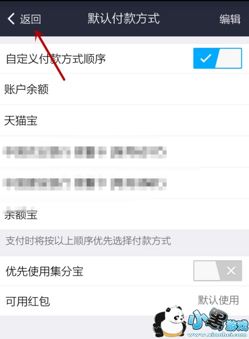 5、打开“默认付款方式”界面,点击右上角的“编辑”