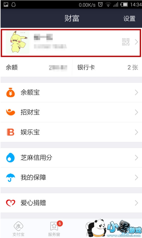 2、打开“财富”界面,点击上方的个人信息。