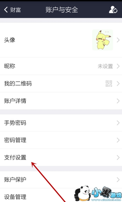 3、打开“账户与安全”界面,点击“支付设置”