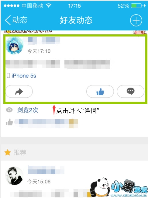 1、进入空间,点击图中绿框框所示的部分进入“详情”