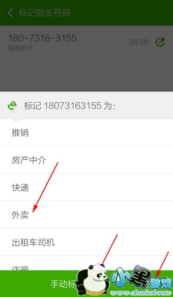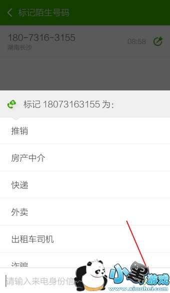 3.选择号码的类型,如果没有,也可手动标记,或者直接拉黑