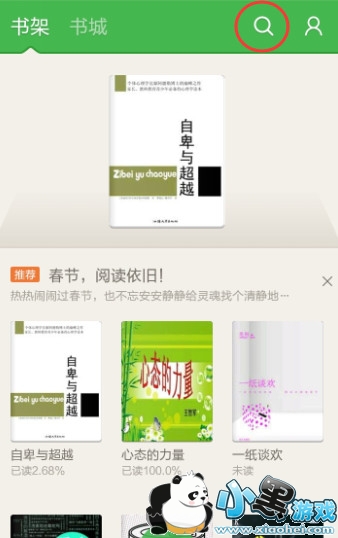 3、进入百度阅读主页面,点击右上方的【搜索】图标