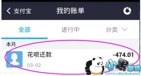 5、在账单中看到花呗还款扣款,再进入花呗的时候就会看到你已不款所欠的钱。