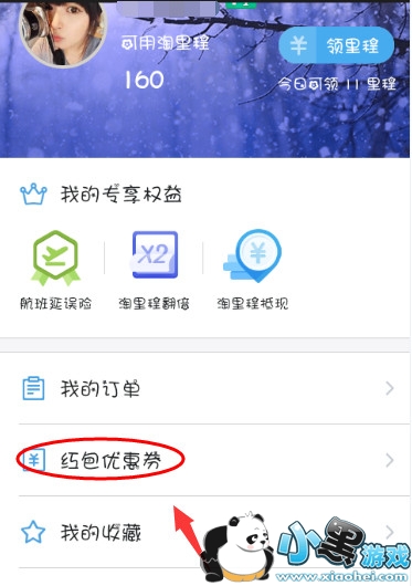 2、然后点击【红包优惠券】