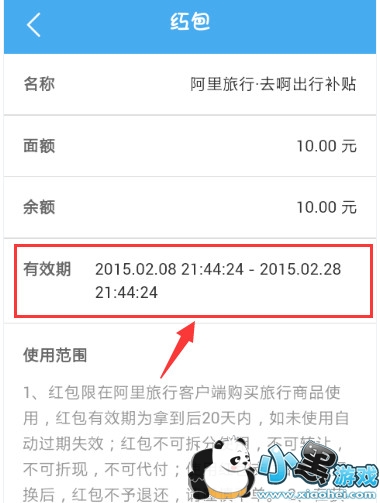 4、然后认真看一下红包的有效期,没到使用期或者过期都无法使用