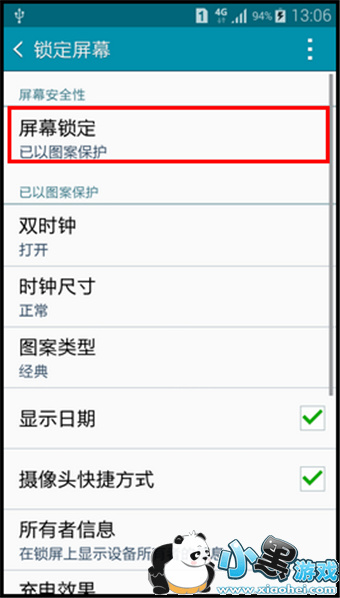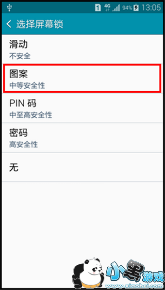 4. 点击【屏幕锁定】,然后选择【图案】。