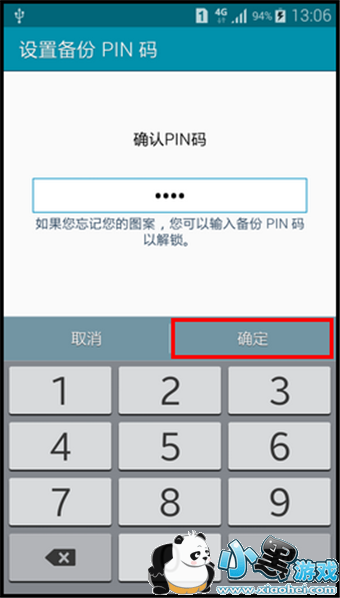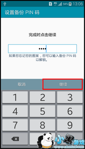 7. 输入备份PIN码,点击【继续】。(如果您忘记所设置的图案,您可以输入备份PIN码以解锁。)