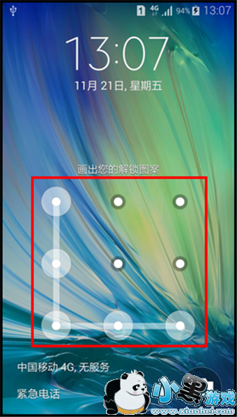 9. 当屏幕锁定时,绘制您所设置的图案后就可以进入主界面了。