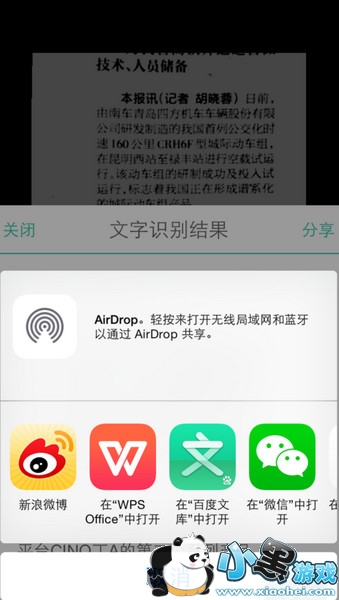6、再点下面的OCR,所有图片上的文字都被识别为可以编辑的了。然后我们点击分享,就可以把识别后的信息分到邮件,或者其他程序中打开编辑了。