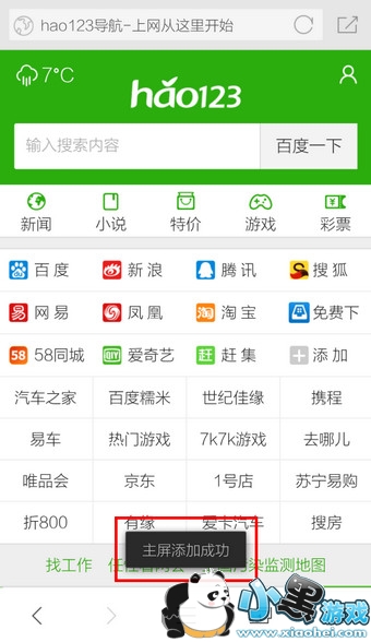 5.网页添加到主页成功