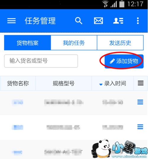 2、然后我们再任务管理选项卡上点击“添加货物”