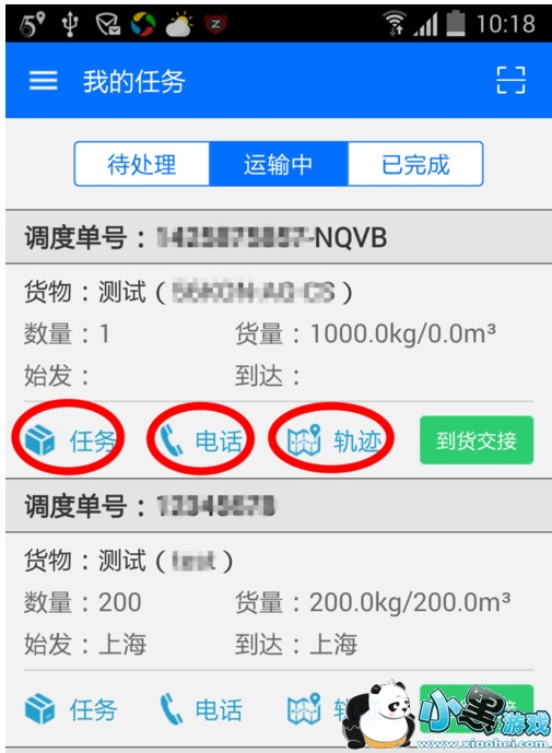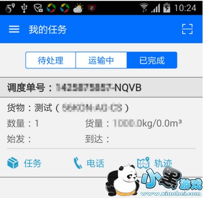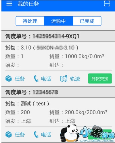 1、首先我们打开物流控,然后看到界面“待处理”==“运输中”==“以完成”的三个状态