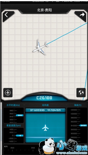 5、接下来,我们就会看到该航班的详细情况,包括飞机的路径,经纬度,速度等详细信息。当然还有我们熟知的查询航班的功能,小伙伴们赶快试试吧。