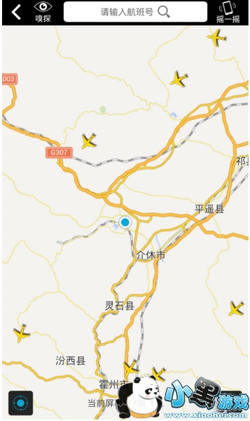 2、接下来,我们就会看到在自己所在的区域有多少架飞机在飞行,然后我们点击右上角的“摇一摇”按钮,进入下一个界面