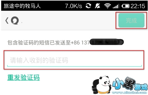 7、这里你的手机会收到一个验证码, 查看短信输入你验证码,点击“完成”,