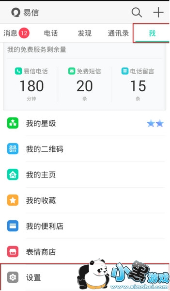 1、首先我们打开易信客户端,点击“我”在下面选择并点击“设置”