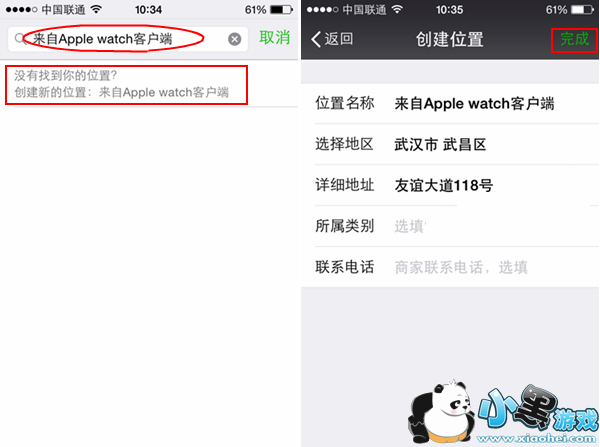 2,然后在“搜索附近位置”一栏中输入“来自Apple watch客户端”字样,对于什么版本的自己也可以随意输入。然后点击一下“没有找到该位置”便可来到“创建位置”界面,在其输入相关信息后点击“完成”
