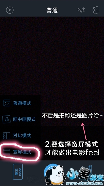 2.不管是拍照还是图片,要选择宽屏模式才能做出电影feel