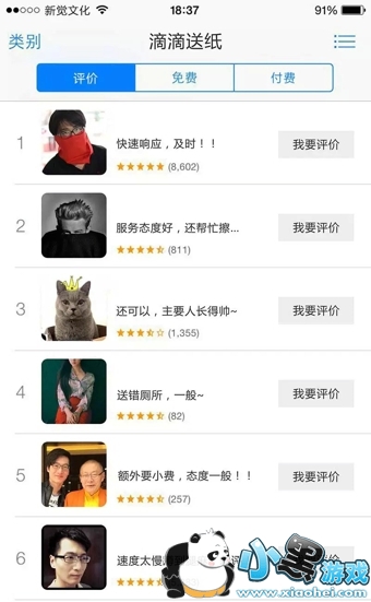 作为享受服务的一方,app还为其提供了评价系统,每日更新送纸者服务排行榜。在这个排行榜上,会显示送纸者的评星级别、客户评论与服务人数,极大方便了享受服务者的选择。