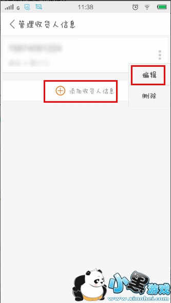 2、点击添加收货人信息,添加一个“配送地址”或者我们也可以点击已有信息的旁边的三个点点==编辑==然后重新编写==点击“保存”