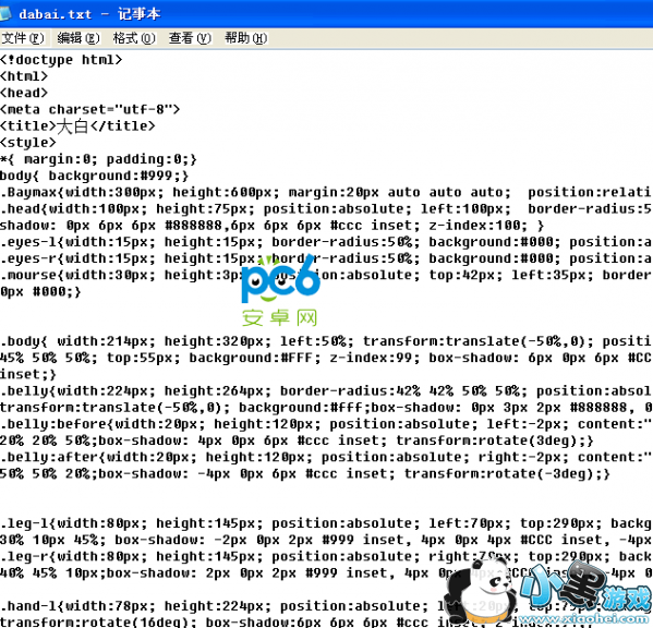相信今年的《超能陆战队》里面的大白已经赢得全球妹纸的芳心了,想要拥有一个这样的萌物是不是觉得不太可能?如果你能跟妹纸展示一个大白的代码制作过程是不是也能弥补一些?下面讲究告诉大家怎么用代码来写出《超能陆战队》里面萌萌哒的大白!