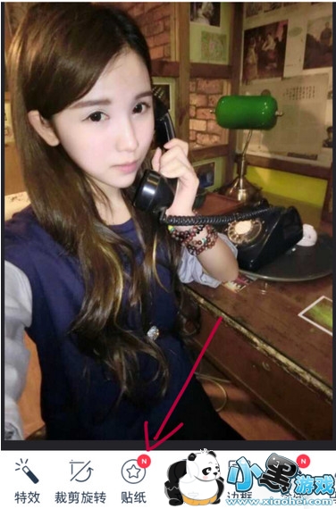 2、大家可以在相册中找一个照片,然后滑动下面工具,就可以找到贴纸工具了