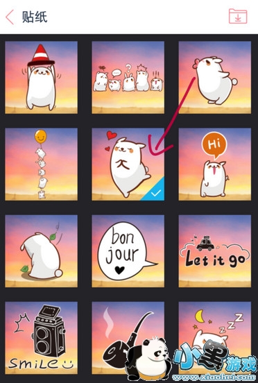 3、我们可以看到里面有很多的贴纸工具,若不喜欢也可以点击进去下载