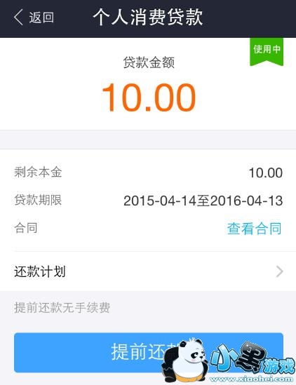 软件会提示还款的总额和利息,当然,还款越早利息越低。