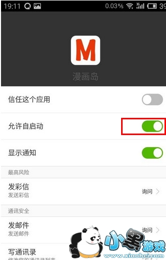 4、我们进入程序的权限下面后,这里有一个“允许自启动”,我们关闭它
