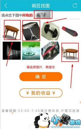 5、看到有图片出现后,要注意所显示的字是什么,比如“桌子”,这时候你需要在八张图里面找出是桌子的图片。