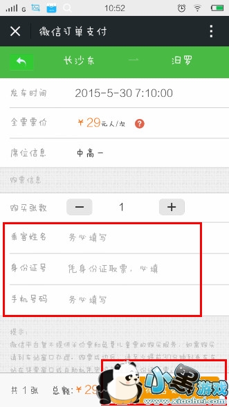 6、进入支付页面后大家填好你的真实姓名、身份证号、手机号码点击“微信支付”