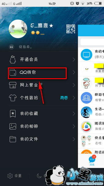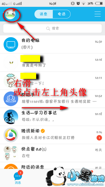 1、我们在手机QQ的主界面点击左上角的头像或者右滑主界面