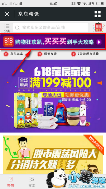 3、进入京东精选的页面,选择页首的“618 购物狂欢趴,买买买剁手大攻略”