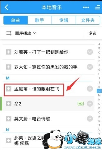 3、在“本地音乐”中找到一首歌,点击这个歌进行播放