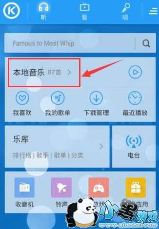 2、在酷狗音乐的主页里面,可以找一首歌来听,比如在“本地音乐”里