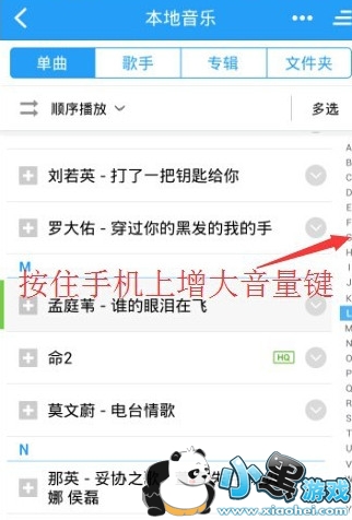 4、在歌曲播放的过程中,我们需要点击手机的音量键,将音量向增大的方向调整,调至最大。